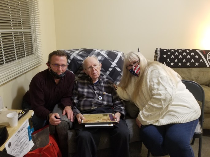 Presentation of Dan’s 75-year pin and certificate was completed by his son Scott and his daughter Pam. Also present was Marcia Greene, past matron of the OES, who assisted in the coordination of the virtual call.